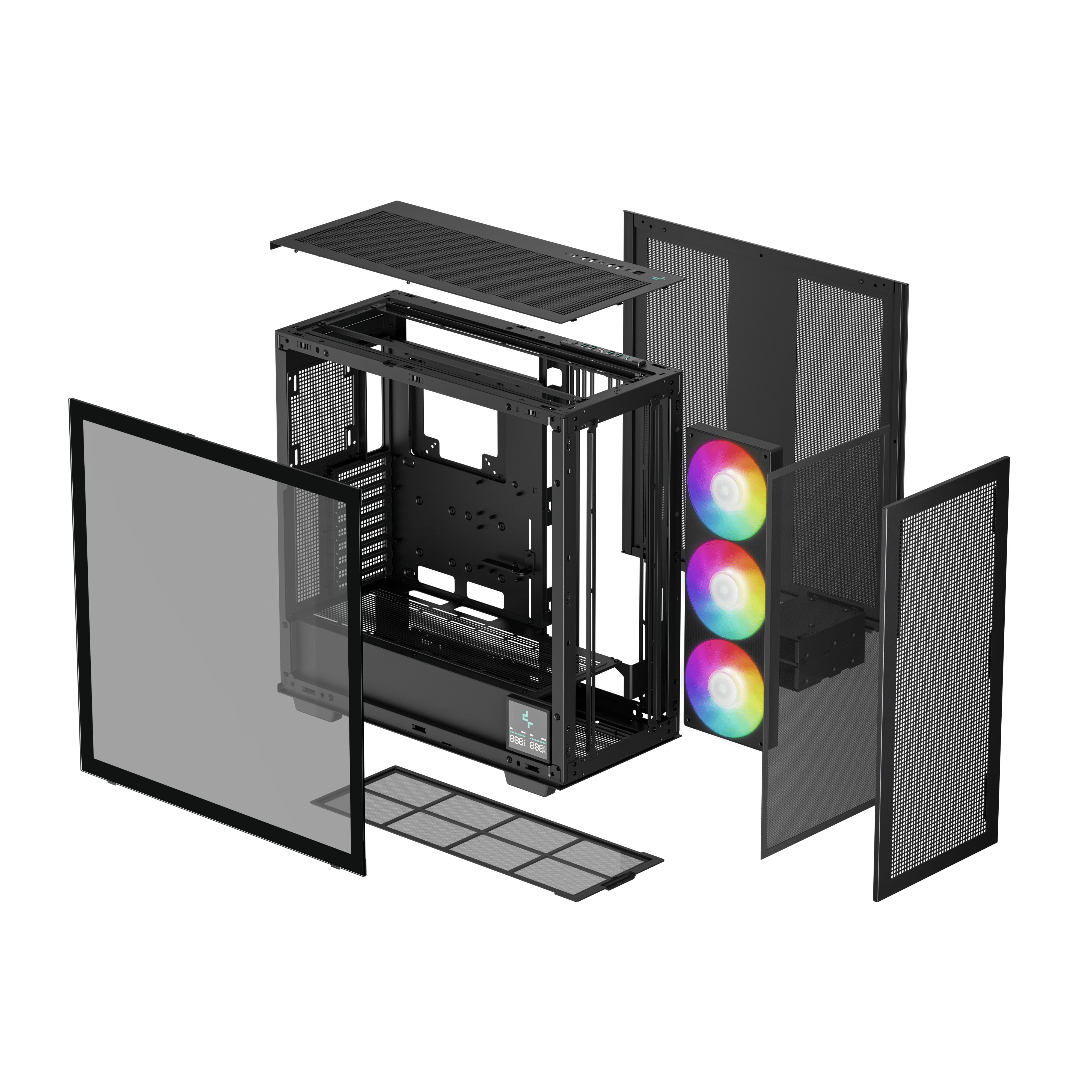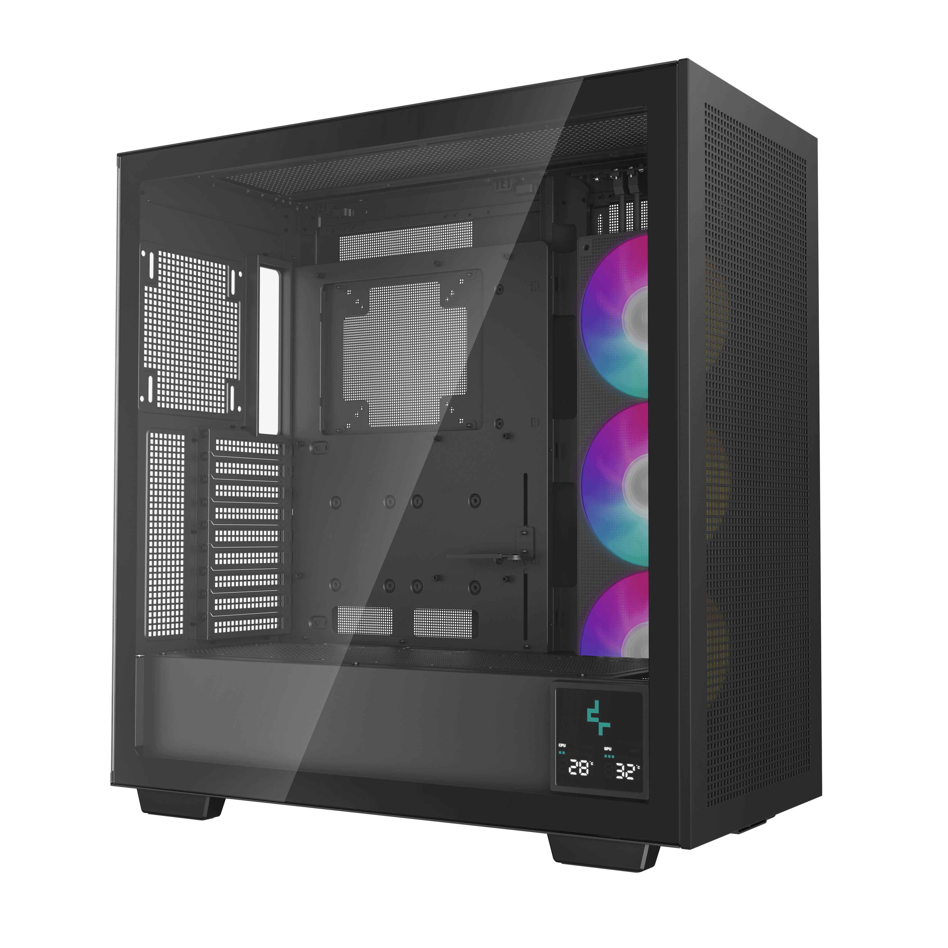 DeepCool MORPHEUS ATX+ Modular Airflow case, Single and Dual Chamber Configurations, Dual Status Display, Trinity 140mm ARGB Fans, Vertical Mount and Gen 4 Riser Cable, Magnetic Mesh Filters, Type-C, 4x USB 3.0, Black